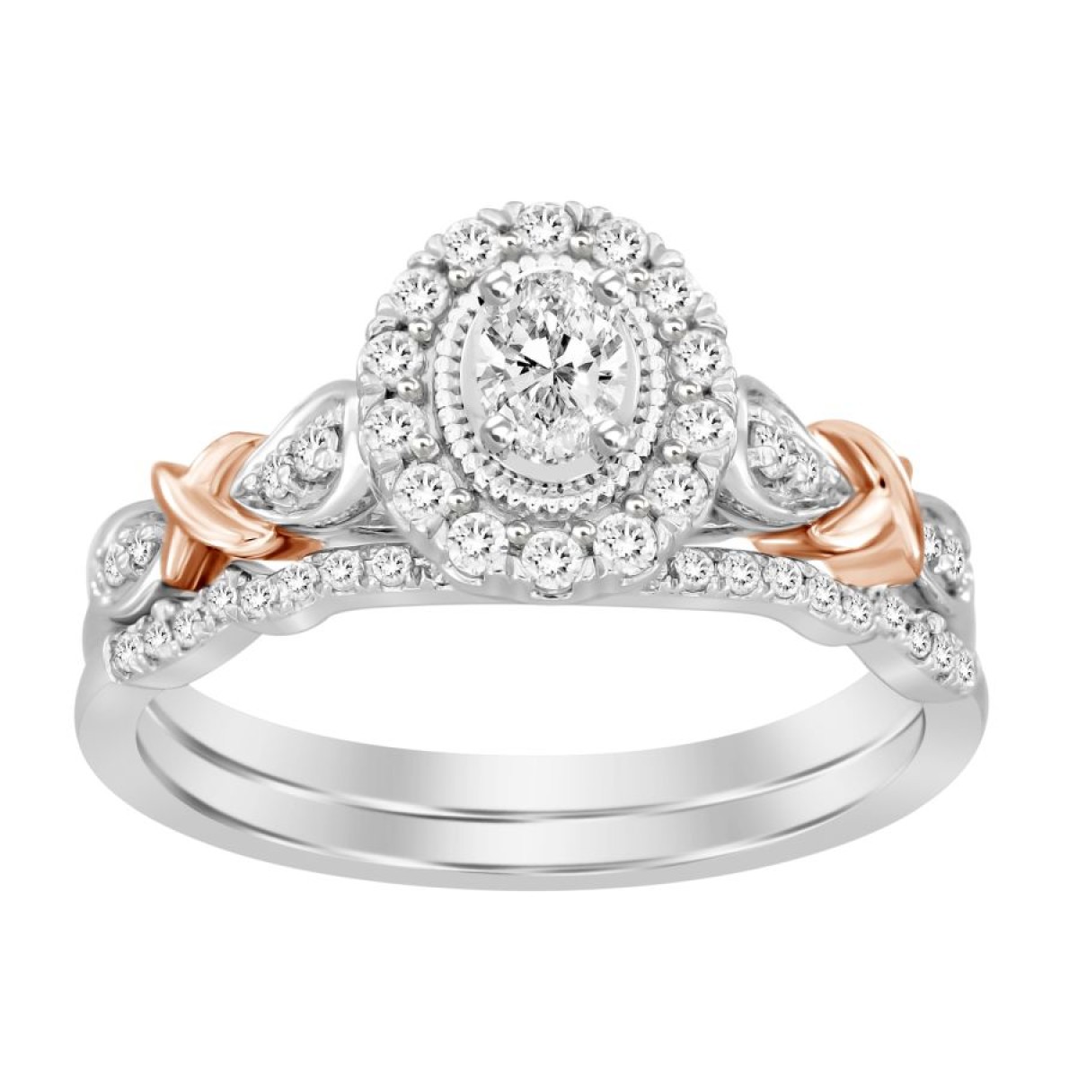 LADIES BRIDAL SET 0.50CT ROUND/OVAL DIAMOND 14K WHITE/ROSE GOLD