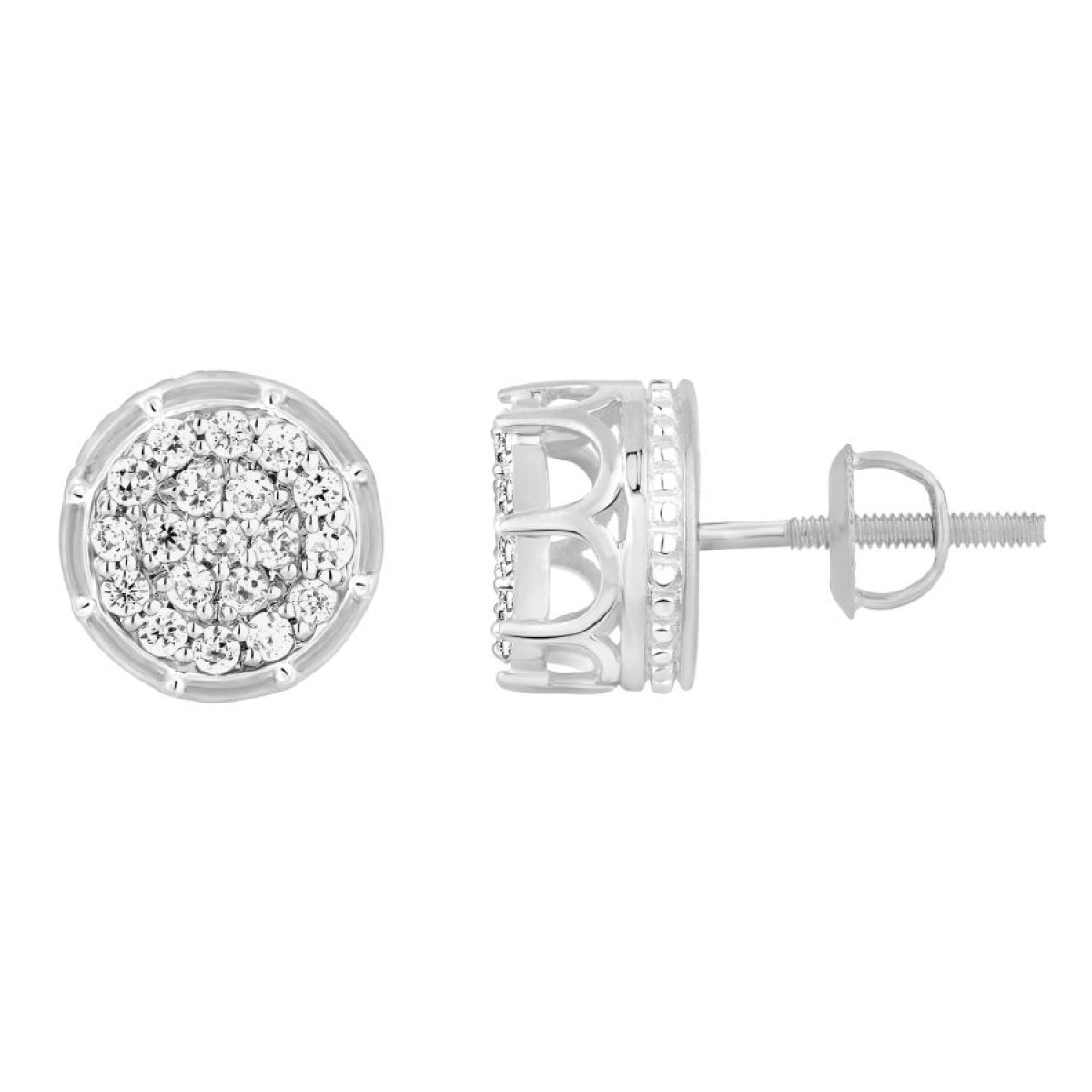 MEN'S STUD EARRINGS 0.50CT ROUND DIAMOND 10K WHITE GOLD