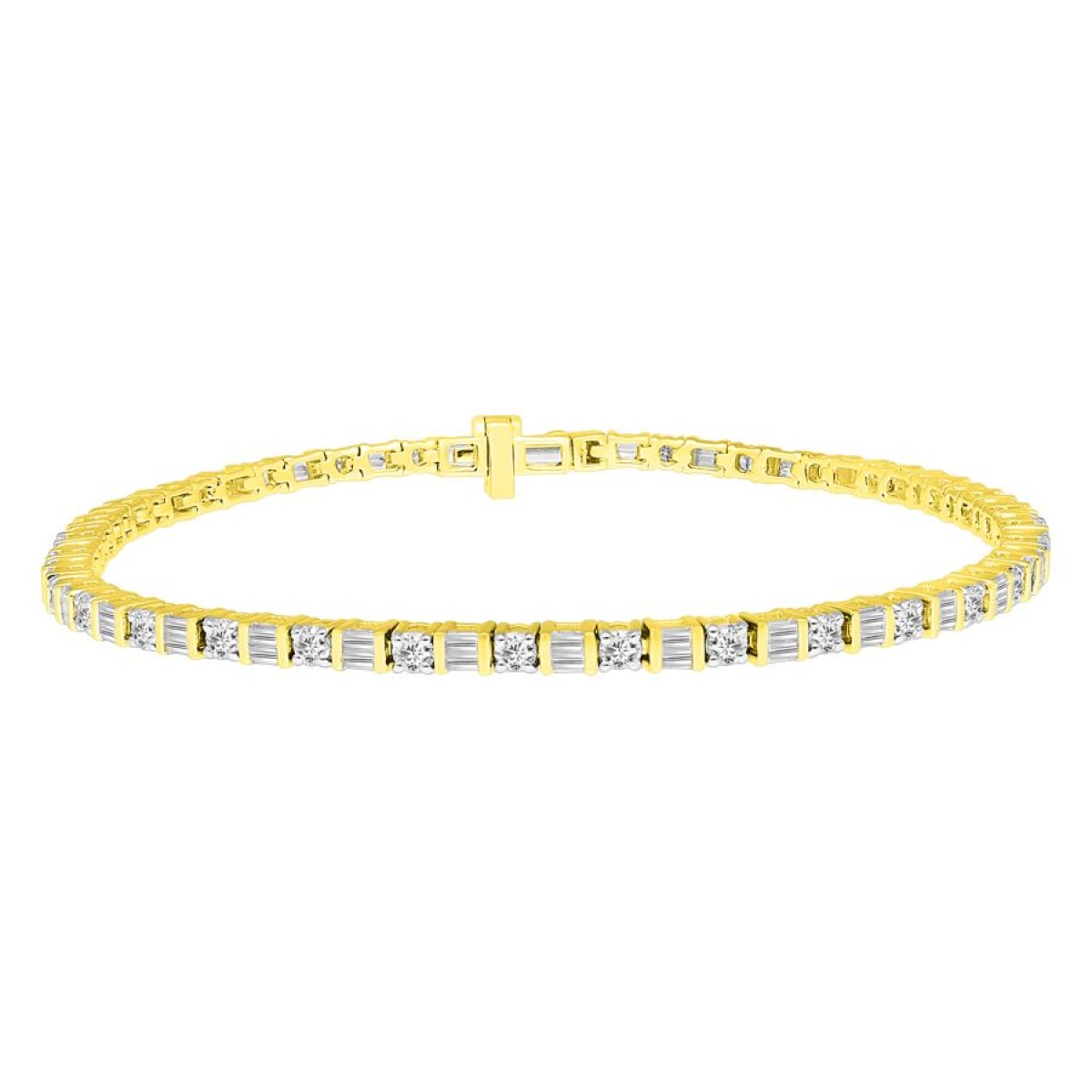 LADIES BRACELET 2.00CT ROUND/BAGUETTE DIAMOND 10K YELLOW GOLD