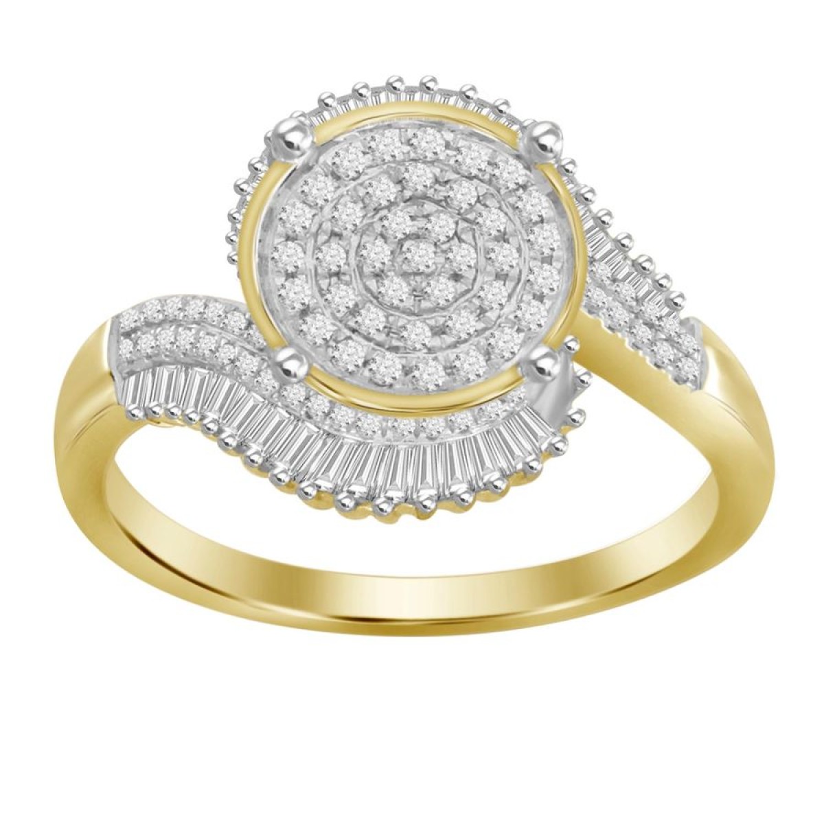 LADIES RING 0.40CT ROUND/BAGUETTE DIAMOND 10K YELLOW GOLD