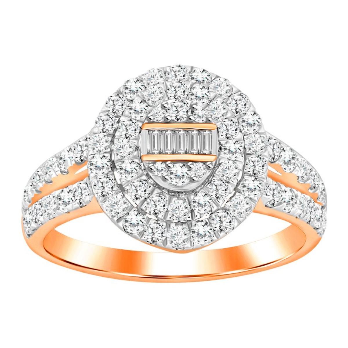LADIES RING 0.75CT ROUND/BAGUETTE DIAMOND 10K ROSE GOLD