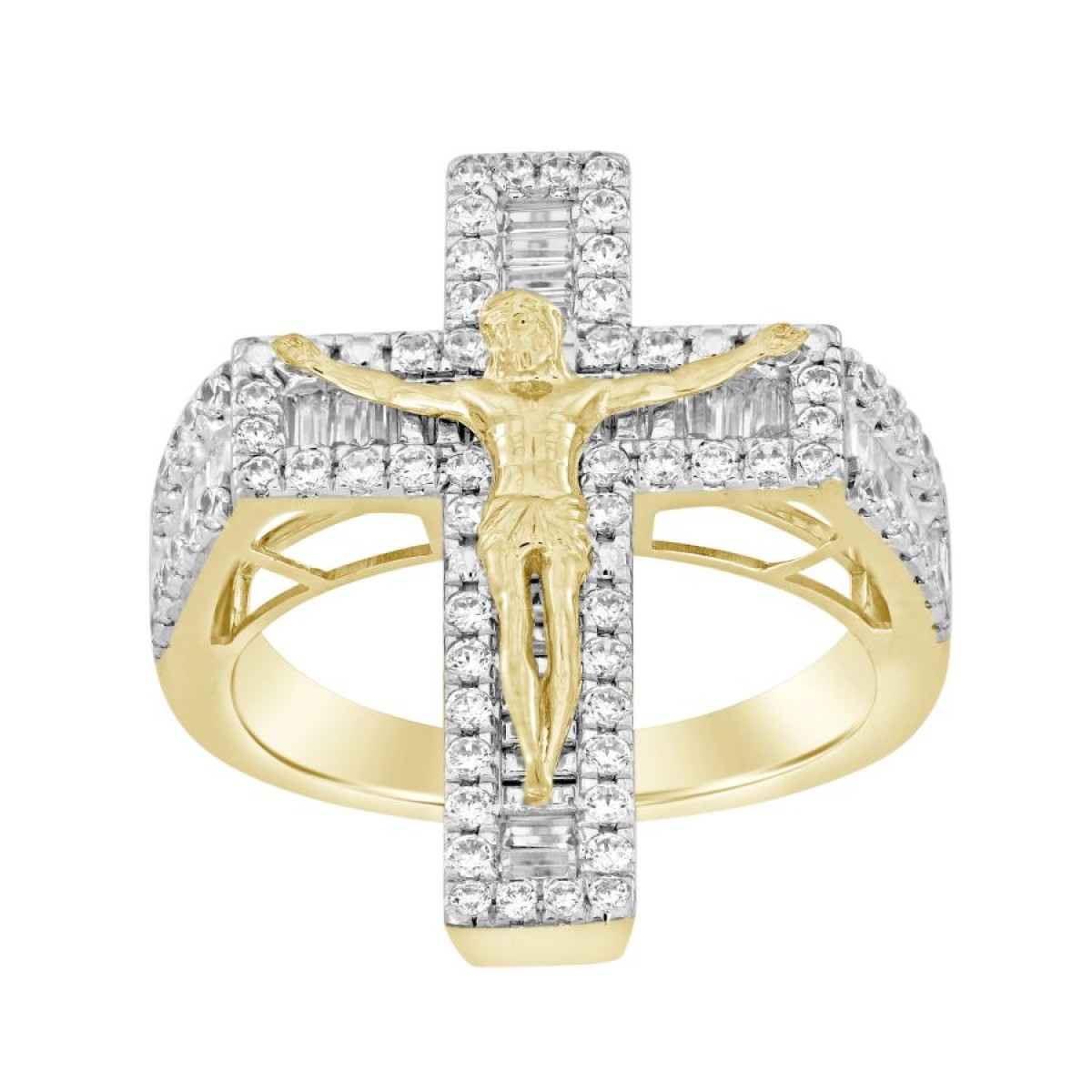 MEN'S RING 1.00CT ROUND/BAGUETTE DIAMOND 10K YELLOW GOLD