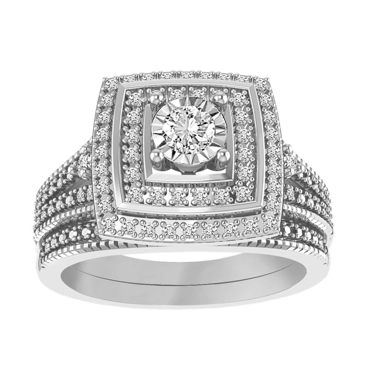 LADIES BRIDAL SET 0.33CT ROUND DIAMOND 10K WHITE GOLD (CENTER STONE 0.10CT ROUND DIAMOND)